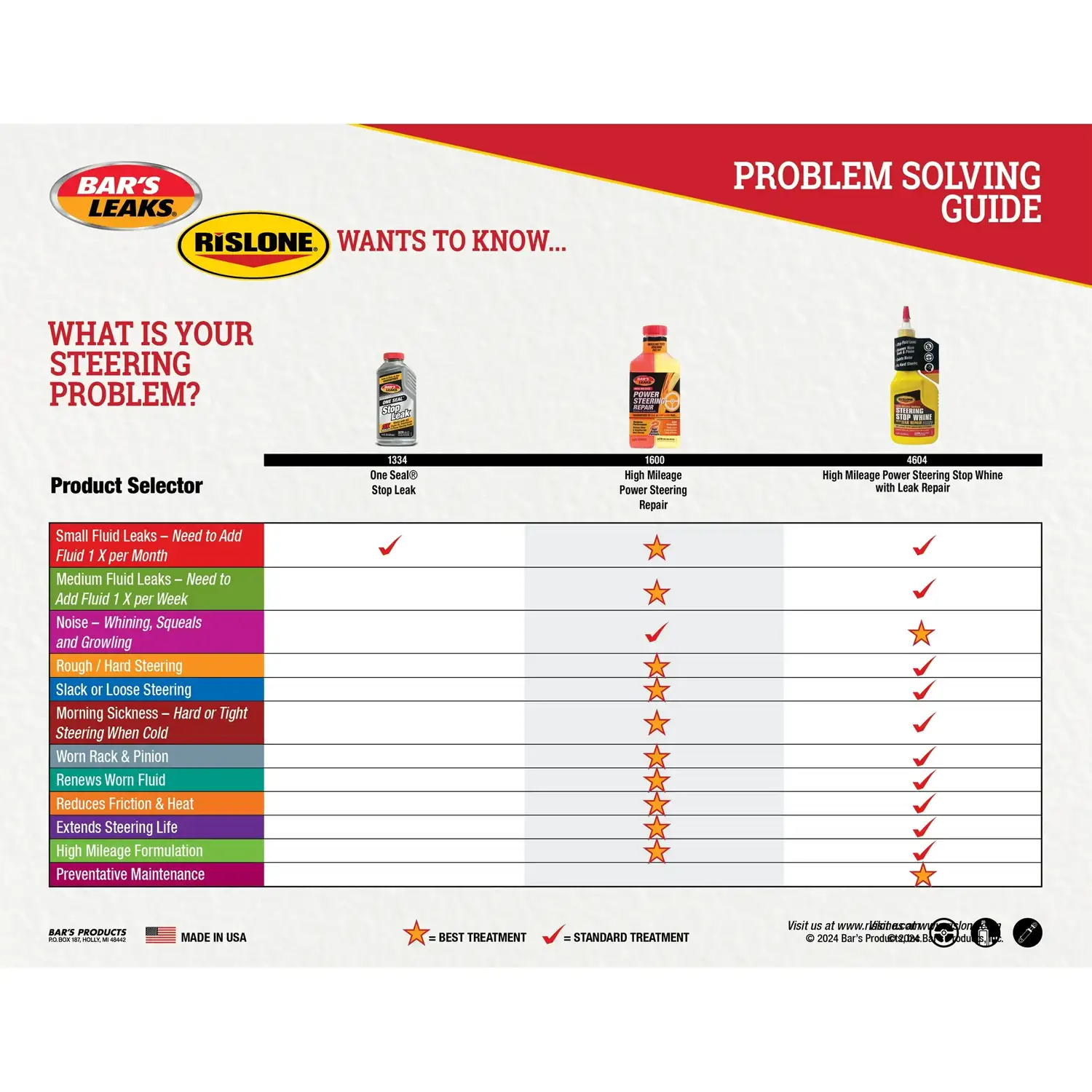 Líquido de dirección asistida Rislone High Mileage Steering Stop Whine con reparación de fugas 4604, 11.8 oz